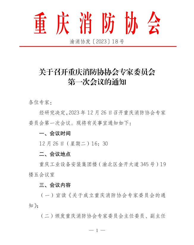 关于召开重庆消防协会专家委员会第一次会议的通知