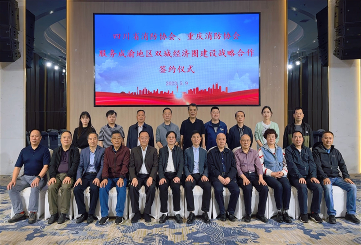 为深入贯彻落实中央推动成渝地区双城经济圈建设的决策部署,共同助力成渝地区双城经济圈高质量发展,5月9日,四川省消防协会一行专程来渝,与重庆消防协会进行友好协商。双方在重庆消防协会19楼5会议室签订了《服务成渝地区双城经济圈建设战略合作协议》。重庆消防协会常务副会长吴松荣、副会长朱新华、蹇可银、徐烛、袁明清、陈历军、秘书长吴华、监事李昌杰、副秘书长罗先泽,四川省消防协会会长侯自强、副会长刘学曦、李勤、孙国莉、陈小勇、秘书长郭军、办公室主任胡明忠等出席签约仪式。签约仪式由重庆消防协会秘书长吴华主持。
