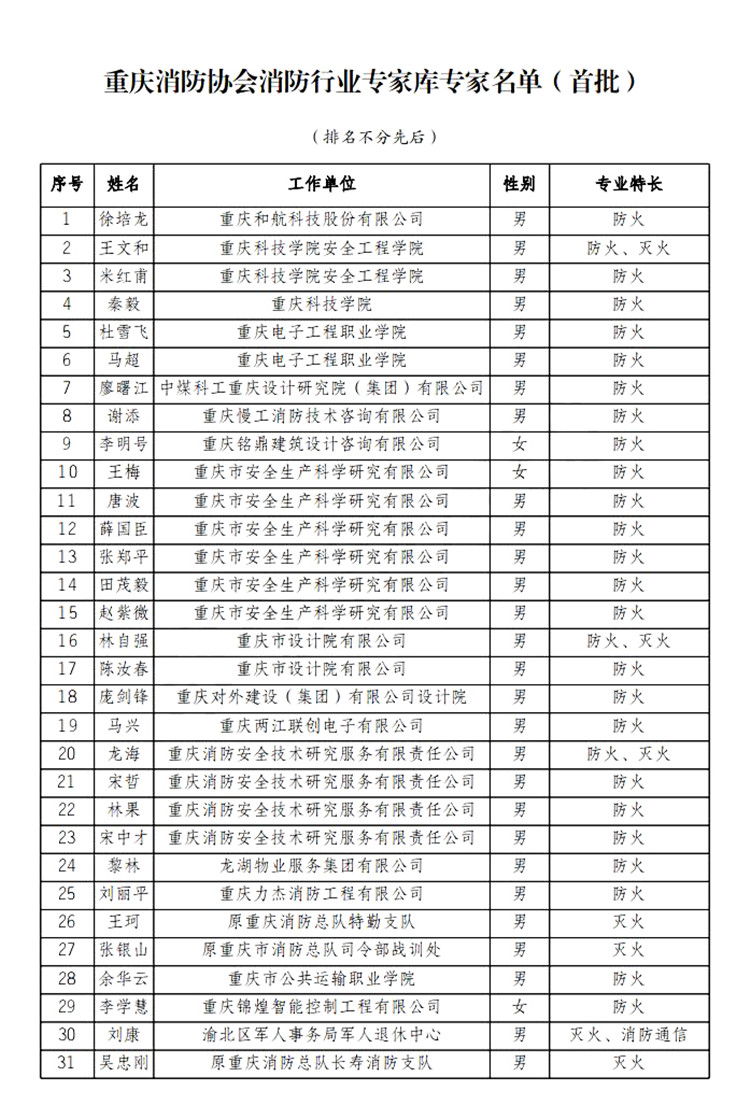 附件:重庆消防协会消防行业专家库专家名单(首批)点击打开链接